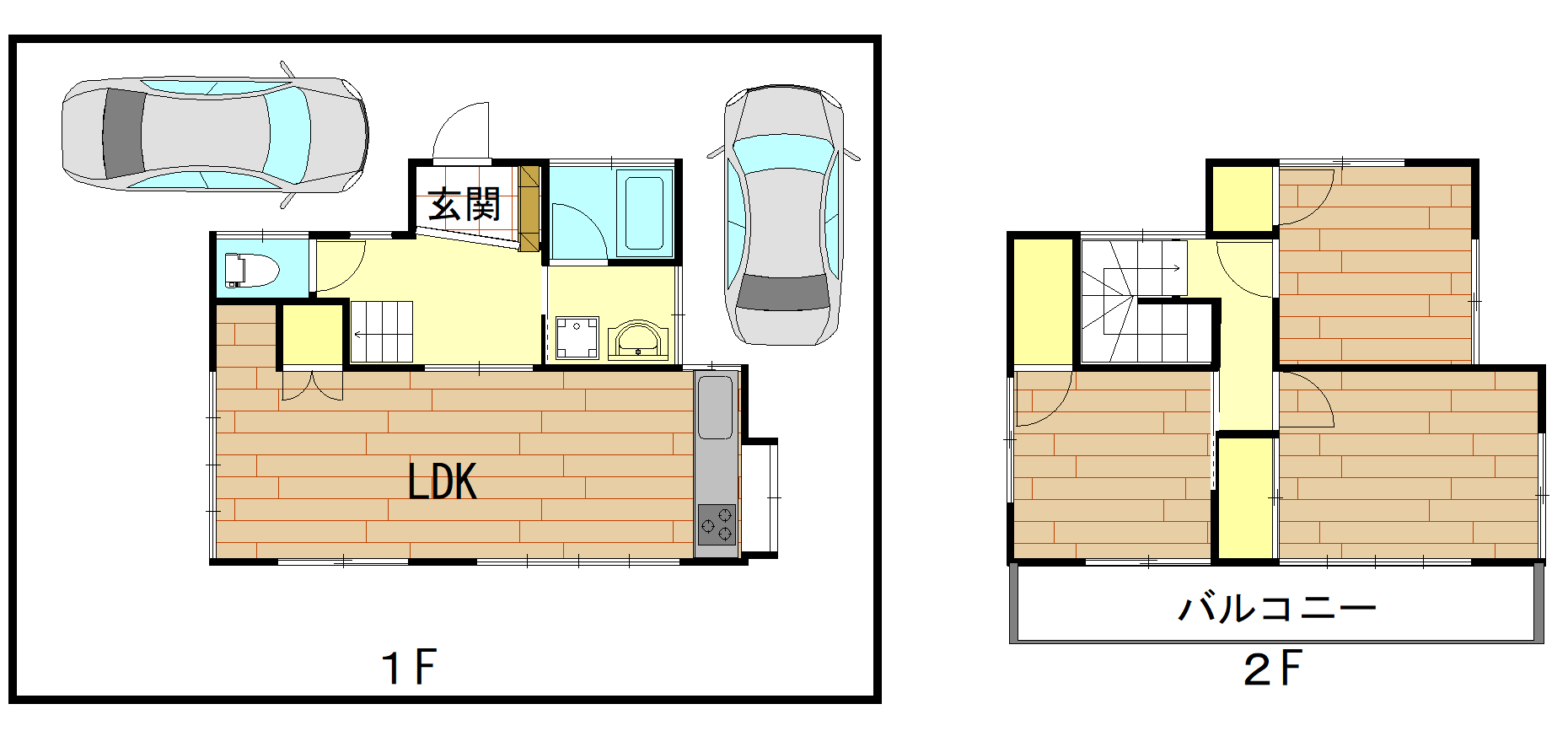 | ● | 収納スペース | ● | 日当たり良好 | ● | 2口以上ガスコンロ設置可 | ● | 駐車場2台無料 |